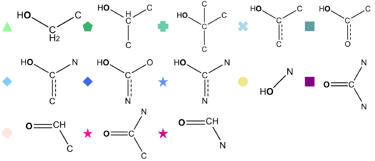 We can also start to reveal some interesting trends from our predictions. For example, as expected, the acidity profile is as expected, carboxylic acids have a low pKa due to their readiness to give up a proton easily, whereas groups like alcohols lie on the opposite end of this spectrum. Additionally, alcohols that have nitrogen, like hydroxylamine are more acidic than just plain old alcohols (with carbons) as the nitrogen’s extra electron make the proton more unstable and want to leave. Similarly with alcohols near a double bond are more acidic than plain old alcohols because of the double bond electron donating nature which destabilizes the hydrogen.